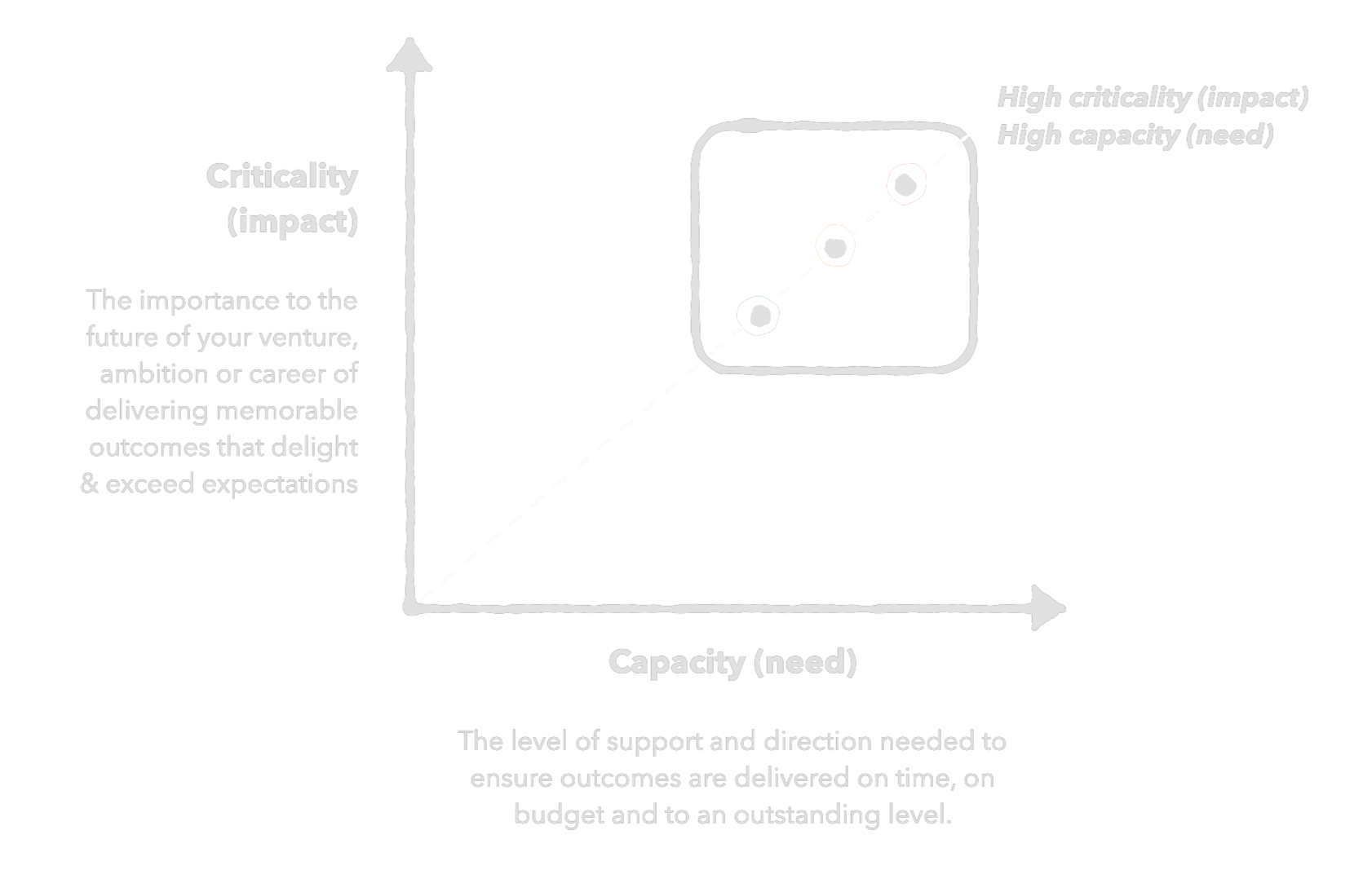 Designed for complex, high-stakes projects requiring extensive planning and sustained effort, aimed at driving long-term growth and innovation (e.g. enterprise growth strategy, AI digital transformation strategy). Often associated with wider fractional / interim CXO or C-1 leadership and direction needs.You need a complete end-to-end need which needs to be developed from the ground up (tech, people, culture, growth etc) You want outcomes not inputs to enable delivery.
